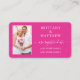 Tarjeta de inserción de registro de boda con caligrafía moderna de moda. Foto en la parte delantera. Rosa caliente