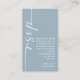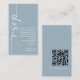Tamaño mini Caligrafía moderna Código QR Boda azul turbia RSVP está en un conjunto elegante de caligrafía rotada y a la izquierda, con su mensaje a la derecha. Personalice fácilmente el resto del texto a sus propios detalles y reemplace el código QR de ejemplo en la parte posterior por el suyo propio reemplazando simplemente la URL del código de ejemplo por la url de su propio sitio web boda.