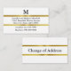Tarjeta De Recepción Cambio de dirección Monograma blanco Oro y negro