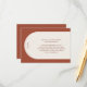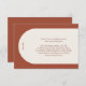 Tarjeta de gabinete boda moderna con sus detalles en el interior de un arco de color crema sobre un fondo rojizo. La espalda tiene su monograma. Este diseño sencillo y elegante, con colores tierra y desérticos, es ideal para un boda de estilo boho en verano o otoño.