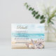 Diseñado para coordinar con mi colección de bodas Seashells Message in a Bottle, esta tarjeta de información para invitados con tema náutico presenta un arte de acuarela de una playa arenosa veraniega y conchas marinas que muestra claramente los detalles importantes de su boda, como alojamiento en hotel, información de la recepción de bienvenida, direcciones especiales, sitio web de la boda, etc. Personalice fácilmente el texto: simplemente reemplace el texto de muestra con su información en los campos designados. Si se necesita una personalización adicional, simplemente haga clic en "personalizar más" para ajustar el tamaño de la fuente, el espaciado, etc.