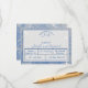 El diseño presenta un elegante efecto "marbling" de tonos azules y grises como fondo de la forma que muestra el texto. El diseño se ve dominado por el aspecto de las cintas delicadas. En el reverso aparece el mismo efecto de mareo con la imagen de la cinta y el arroz tirado. Todo el texto es personalizable. Diseñada para acompañar la "Suite Boda de Mármol Azul y Gris".