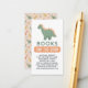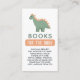 Este lindo y moderno diseño de la tarjeta para bebés de la ducha de bebé tiene un dinosaurio, con un lindo patrón rosado en la parte trasera. Hay espacio para pedir a los clientes que traigan un libro para añadirlo a la biblioteca del recién nacido, que usen el poema que se les ha proporcionado o que creen su propio mensaje.