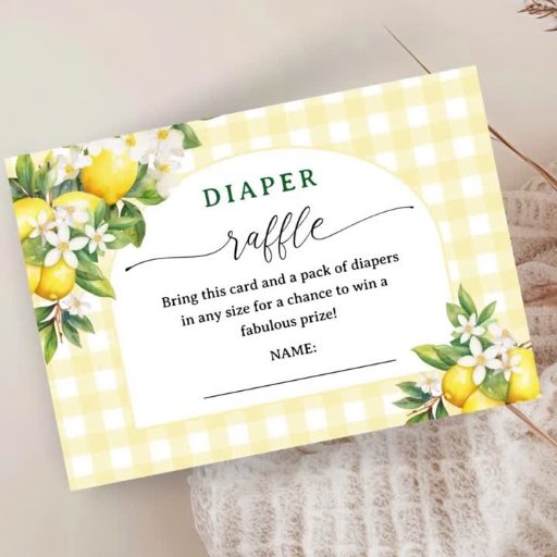 Eleva tu Baby Shower con nuestras "Tarjetas de Raffle de limón de cítricos Baby Shower", y da a tus invitados la posibilidad de participar en el Diaper Raffle! Dales la oportunidad de ganar increíbles premios mientras ayudan a los futuros padres a prepararse para su grupo de alegría. No te pierdas - toma tu tarjeta de pañal Raffle y haz que tu ducha de bebé sea aún más especial!