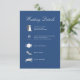 Elegant true blue wedding details card featuring refined calligraphy script and a clean, modern timeline layout. This sophisticated enclosure highlights your full wedding day schedule—from ceremony to reception, dinner, dancing, and send-off—paired with minimal icons for a polished, organized look.