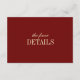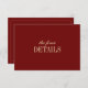 Classic Elegant Wine Red Wedding Details Enclosure Card. A minimalistic and formal "the finer details" wedding enclosure card, designed with elegant script lettering. Customize with your reception details, accommodations info, and wedding website on the back.