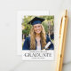 These classic graduation party invitations feature a custom photo and traditional typography. Their small business card size makes them easy to hand out to friends, classmates, and family, or as insert cards to include with your graduation announcements. You can personalize the template with the graduate's picture, name, the party's date, time, location, and RSVP details. Designed with a sophisticated and minimalist aesthetic, these invitations are ideal for graduates who appreciate timeless style. They are perfect for high school, college, or university graduation celebrations. Printed colors: black and white.