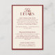 Tarjeta De Recepción Classy Burgundy Cream Old Money Wedding Details