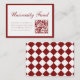 Classy Wine Red University Fund QR Code Graduation Enclosure Card. An elegant and classic wine red and white "university fund" enclosure card, designed with script lettering, a checkered pattern on the back, and a QR code for your guests to scan and easily donate online.