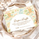 A whimsical watercolor design featuring a playful mix of pastel summer animals surrounded by tropical leaves, seashells, starfish, and soft botanical details. The cheerful palette of peach, mint, coral, and soft blue creates a light storybook atmosphere, while the elegant arch layout keeps the celebration details beautifully framed and easy to read. Perfect for a warm, joyful summer celebration with a charming nursery aesthetic.