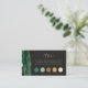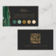 El borde izquierdo de esta elegante tarjeta de recinto para vestidos de boda cuenta con un borde de batido de color verde esmeralda recortado con un falso purpurina de oro. La palabra "atuendo" aparece en un guión de escritura a mano de color dorado, con su solicitud de código de vestimenta en letra de placa de cobre dorada en un fondo no negro. Personalizar fácilmente los cinco círculos de color eligiendo "Personalizar esta plantilla > Editar usando herramientas de diseño". Inserte la dirección URL del sitio web del boda para generar un código QR en la parte posterior de la tarjeta y edite el texto con sus nombres y fecha de boda.
