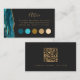 El borde izquierdo de esta elegante tarjeta de recinto para vestidos de boda cuenta con un borde verde azulado de acuarela azul recortado con falso purpurina de oro. La palabra "atuendo" aparece en un guión de escritura a mano de color dorado, con su solicitud de código de vestimenta en letra de placa de cobre dorada en un fondo no negro. Personalizar fácilmente los cinco círculos de color eligiendo "Personalizar esta plantilla > Editar usando herramientas de diseño". Inserte la dirección URL del sitio web del boda para generar un código QR en la parte posterior de la tarjeta y edite el texto con sus nombres y fecha de boda.