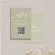 Este diseño presenta una tarjeta de gabinete de código QR RSVP de boda con colores verde sabio, un estilo minimalista y mínimo, con nuestro sitio web en línea, con un sencillo y elegante guión,