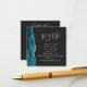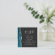 El borde izquierdo de esta elegante y moderna tarjeta del sitio web del boda incluye una verde azulada barra de acuarela azul recortada con un falso purpurina plateado. El título aparece en el guión de escritura a mano gris plateado, con el texto de personalizable debajo en letra de copperplate en un fondo no negro. Cargue su sitio web boda código QR para reemplazar la imagen de ejemplo en el reverso, enmarcado por las palabras "escanéenme a RSVP".