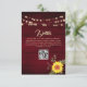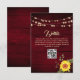 Luces de cuerda doradas elegantes en tarjeta de detalles de boda rústica de madera con código QR para más información y girasol.