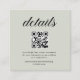 Tarjeta de respuesta/tarjeta de detalles de la página web de boda elegante verde salvia (color personalizable) con un código QR añadido. Personaliza con tu foto en la parte posterior. Contacta conmigo para obtener ayuda con tus personalizaciones o para solicitar productos Zazzle adicionales que coincidan o coordinen para tu(s) evento(s).