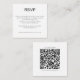 Tarjeta de respuesta con código QR en texto blanco y negro simple en forma cuadrada para incluir con tus invitaciones. Un tamaño mini de 2,5" cuadrada.