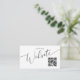 Elegante tarjeta de gabinete para su boda mínimo con un código QR. Esta tarjeta contiene textos editables en los que puedes listar tu dirección web para que los clientes puedan encontrar información útil durante su estancia para el boda. La palabra "sitio web" está escrita en letra de escritura moderna.