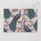 Esta moderna tarjeta de gabinete QR del sitio web Rubor Pink Peacock incluye flores de ave pavo real y verde azuladas de color azul y magnolia y un elegante patrón en la parte trasera, todo con un elegante fondo rosa. Todo el texto es editable.