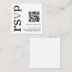 QR Code Gold Boda blanco de texto negro en línea RSVP. Un pequeño recinto cuadrado de 2,5" para incluir al enviar sus invitaciones para que sus huéspedes puedan hacer un viaje práctico. Reemplace el código QR de ejemplo con el suyo propio, para crear su búsqueda de código "generar código QR" en línea. Un diseño tipográfico moderno con RSVP en tipografía grande en negro con la "v" en oro, rotado y a la izquierda.