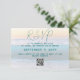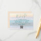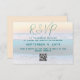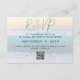 Tarjetas de respuesta de boda en la playa con código QR para el sitio web del boda. Pide a los invitados que respondan a la invitación en línea. Incluir una fecha y otra información en texto azul verde azulado sobre una imagen de fondo del amanecer del océano.