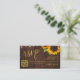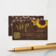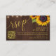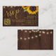 Rústico y elegante girasoles invitación de boda barato precio asequible MINI SIZE tarjeta de gabinete de respuesta RSVP online con escaneo de código QR (generado automáticamente) en un fondo de madera de grano marrón con cadenas de luces de trineo. ++++++++++ Consulte la colección para ver si hay diseños de fondo coincidentes.