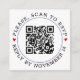 Código QR en línea RSVP periwinkle borde redondo azul y tarjeta de gabinete boda de corazones rojos. Los clientes pueden escanear el código QR de esta tarjeta en RSVP en línea. El fondo cubre un fondo azul peringuil.