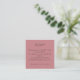 Simple QR Code Dusty Rosa de boda rosada RSVP gabinete que le hace más conveniente a sus invitados responder escaneando su código QR que lleva a su sitio web boda. Un miniclub de 2,5" cuadrado para adjuntar tus invitaciones. Un diseño tipográfico simple y totalmente personalizable. Personalice las palabras con facilidad y reemplace el código QR de ejemplo en la parte posterior por el suyo propio. También puede cambiar el texto y los colores de fondo si lo desea a través de la opción personalizar para que coincida con el tema de color boda. Si necesitas ayuda con esto, por favor envíame un mensaje.