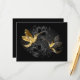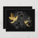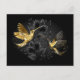 Colibríes con joyas negras y doradas sobre un fondo gris adornado con plantas. Aves de joyas. Ave dorada. Ave dorada.
