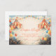 This playful circus-inspired design captures the joyful spirit of a classic carnival celebration. Featuring a charming big top tent, colorful balloons, festive bunting, and soft cloud details, the artwork has a warm storybook feel that’s cheerful without being overwhelming. Perfect for a fun and imaginative baby shower with a lighthearted, welcoming vibe.