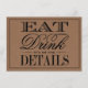 Comer, Beber & Casarse Tarjetas de Detalle de Boda Rústica Kraft.