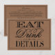Tarjeta De Recepción Comer, Beber & Casarse Boda Rústica Kraft