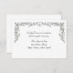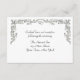 Elegante tarjeta de recepción de boda con borde de rollo floral plateado y acento de corazón. Piezas coincidentes disponibles. http://www.zazzle.com/silver_floral_scroll_rsvp_card_invitation-161383181655053745?gl=StarStock&rf=238742838455122129