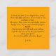 La tarjeta de dirección del sitio web del boda del recinto de la colección "Sunny Petals & Scarlet Blooms" integra perfectamente la comodidad moderna con la elegancia atemporal en un formato compacto de 2,5 x 2,5 pulgadas cuadradas. En la parte delantera, las encantadoras obras de arte de girasoles vibrantes y adornos rojos apasionados adornan el fondo, creando un ambiente vibrante y romántico. Con este telón de fondo, una leyenda de personalizable declara audazmente "sitio web Boda" e indica a quién pertenece, agregando un toque personal a la tarjeta. Debajo, la dirección del sitio web del boda se muestra de forma elegante, lo que permite a los huéspedes acceder fácilmente a más información y actualizaciones sobre el evento. Además, se incluye un código QR para un acceso rápido y conveniente al sitio web. Volando hacia el reverso, un suave fondo amarillo proporciona un telón de fondo sereno para un mensaje de personalizable de la pareja. Este espacio permite a la pareja transmitir sus sentidos sentimientos, expresar su gratitud a sus invitados o proporcionar cualquier información adicional sobre las festividades de los bodas. Esta tarjeta de gabinete compacta combina sin esfuerzo la funcionalidad con la sofisticación, ofreciendo a los huéspedes una manera conveniente de acceder a la información boda manteniendo la elegante estética de la colección "Sunny Petals & Scarlet Blooms".