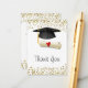 Graduación Gracias tarjeta plana con efecto dorado, mortero negro y diploma.