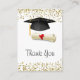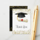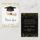 Graduación Gracias tarjeta plana con efecto dorado, mortero negro y diploma.