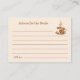 Traiga un toque cálido y acogedor a su celebración con esta tarjeta de gabinete Rustic Coffee Bridal Shower "Consejos para la novia" - perfecta para un tema de Love Is Brewing. Diseñado con ricos tonos marrones, texturas rústicas y una encantadora taza de café en forma de corazón, se respira el ambiente acogedor de una cafetería favorita. Los huéspedes pueden completar sus mejores consejos para el matrimonio, sus sentidos deseos y sus divertidos consejos, creando un gran placer que la novia apreciará en los próximos años. Ideal para las duchas rústicas, de temática cafetalera o de novias de otoño, esta tarjeta añade tanto el sentimiento como el estilo a su evento.