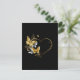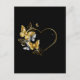 Marco dorado en forma de corazón, decorado con oro, joyas y mariposas blancas sobre fondo negro.