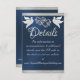 Este diseño romántico presenta un elegante fondo azul con bordes de cinta, corazones y palomas unidos con detalles para más información sobre el código frontal y QR y marcador de posición de monograma en la parte posterior. Disponible en varios colores para el tema boda. (La cinta de opciones se simula en la ilustración). Diseñado para coordinar con la colección de Bodas "Dos se convertirán en uno - plata y oro". Para cambiar detalles, haga clic en "Personalizar". Para mover el texto o cambiar el tamaño del texto, el tipo de letra o el color, haga clic en "Haga clic en el personalizar"
