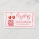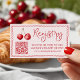 Facilite a los huéspedes la compra de su registro de bebés con esta tarjeta de código QR con temática de cerezo. Con un guión rojo juguetón que dice "Registro", obras de arte de cerezo acuarela y un borde rojo de vieiras sobre un suave fondo rosa rubor, esta tarjeta coincide perfectamente con tu suite de ducha para bebés de cerezo. El código QR incorporado permite a los clientes escanear y acceder rápidamente al sitio web del registro, mientras que el área de texto del personalizable le permite añadir instrucciones para escanear o ingresar manualmente la dirección web.
