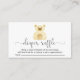 Cuidada tarjeta de gabinete de rifas de pañales para la ducha de bebé neutra en género con "rifa de pañales" en un guión con toques y una acuarela color amarillo pastel y oro de un oso de peluche.