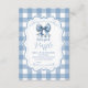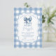 Tarjeta De Recepción Cute Blue Bow Ribbon Gingham Raffle Diapper