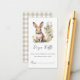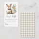 Adorables tarjetas de alojamiento para pañales con ducha para bebés con un bonito conejo. El diseño está decorado con un fondo blanco limpio. En el reverso, un diseño de gingham de color beige plateado le da un toque de encanto al diseño. Además, es muy fácil de personalizar con tu propio mensaje, haciéndolo especial y único.
