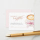 Announce your baby shower diaper raffle with this adorable enclosure card featuring a sweet watercolor illustration. The design centers around a delightful cup of coffee, showcasing a heart-shaped latte art and a pretty pink bow, creating a warm and inviting feel. This card clearly communicates the diaper raffle rules: guests are invited to bring any size diaper for a chance to win a special prize, and there's a space for them to write their name. It’s an ideal way to add a fun, interactive element to your baby celebration and collect much-needed diapers. Let this charming card set the tone for a memorable and well-prepared baby shower.