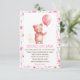 Tarjeta De Recepción Cute Teddy Bear globos rosa para bebé