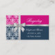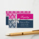 Tarjeta De Recepción Damask Faux Silver Cinta Naval Azul Fuchsia
