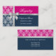 © Socialite Designs. Elegante plantilla de tarjeta de inserción/gabinete para un boda de verano que incorpora damasco blanco, una cinta de cruz y arco de plata impresa, y dos colores de fondo de fucsia y azul marino. Por favor, contacte con Socialite Designs si desea una combinación de colores diferente, ayuda para personalizar u otros productos bodas creados con este diseño. TENGA EN CUENTA QUE EL RIBBON ES UN DISEÑO IMPRESO.