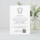 Esta tarjeta monograma de la colección Daphne es perfecta para un boda tradicional. El diseño es sencillo y clásico, con un elegante monograma escudo intemporal con flores y vegetación que rodea las iniciales de la pareja. Personalice su tarjeta de detalles de la invitación a la boda con la dirección del sitio web del boda y el código QR para que los huéspedes puedan recibir RSVP en línea fácilmente.