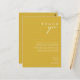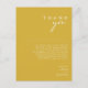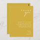 Esta tarjeta de agradecimiento de recepción minimalista moderna en dorado es perfecta para tu boda boho con clase. Su diseño abstracto simple y único acompañado de una tipografía minimalista contemporánea y una paleta de colores en blanco y negro le da a este producto un toque de lujo formal elegante mientras mantiene un estilo bohemiano chic y simple. Puedes dejarla tal como está o personalizarla con la obra de arte o gráficos de tu elección. También puedes ver otros productos dentro de esta colección para unir toda tu boda.
