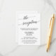 Esta elegante tarjeta de recepción de boda con caligrafía negra es perfecta para una boda sencilla. El diseño neutral presenta una tarjeta minimalista decorada con tipografía romántica y cap